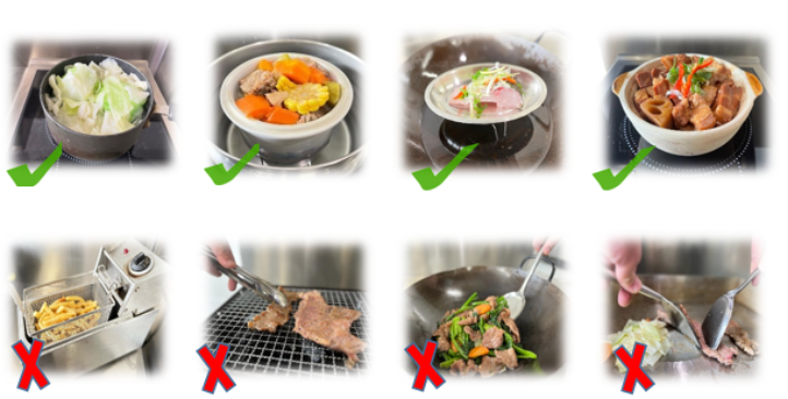 * The examples in the pictures above are for reference only and do not include all the permitted or unpermitted cooking activities.