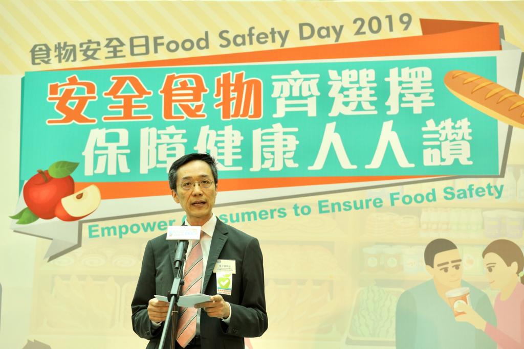The Consultant (Community Medicine) (Risk Assessment and Communication) of the CFS, Dr Samuel Yeung , speaks at the launch ceremony of Food Safety Day 2019 today (June 2).
