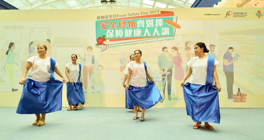 Foreign domestic helper representatives stage a dance performance in support of Food Safety Day 2019.