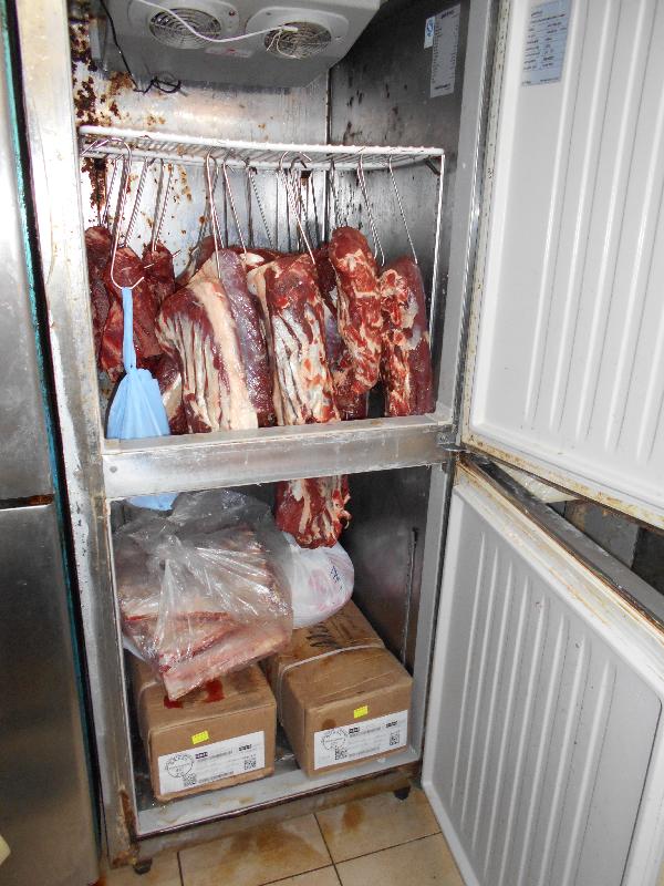 FEHD officers marked and sealed about 184 kilograms of suspected frozen beef at the licensed FPS for further investigation. Two beef samples were collected for testing for preservative. Prosecution will be initiated if sufficient evidence is collected. During the operation, the FEHD also initiated prosecution against the licensee of the FPS for suspected violation of the Food Business Regulation regarding cleanliness of the food premises and equipment, and issued verbal warnings to the licensee for non-compliance with the relevant licensing condition.