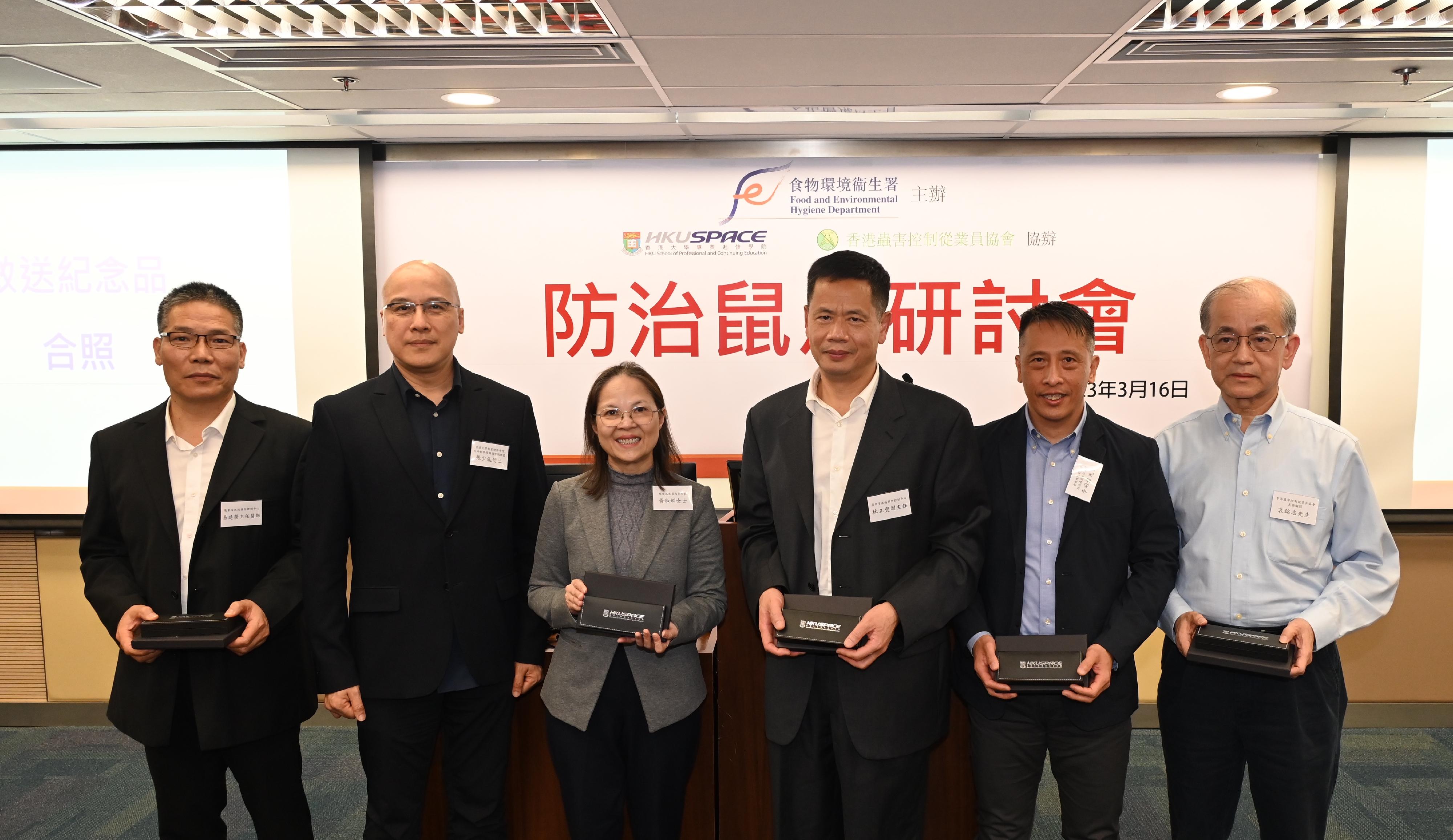 A spokesman for the Food and Environmental Hygiene Department (FEHD) said today (March 16) that two experts from the Guangdong Provincial Center for Disease Control and Prevention were invited to visit Hong Kong for sharing experiences and deliberating with government departments and trade members on the latest developments in rodent prevention and control work. Photo shows the Under Secretary for Environment and Ecology, Miss Diane Wong (third left); the Pest Control Officer-in-charge of the FEHD, Mr Lee Ming-wai (second right); deputy director of the Guangdong Provincial Center for Disease Control and Prevention (GPCDCP) Mr Lin lifeng (third right); chief physician of the GPCDCP Mr Yi Jianrong (first left), and other guests at the seminar on rodent prevention and control.