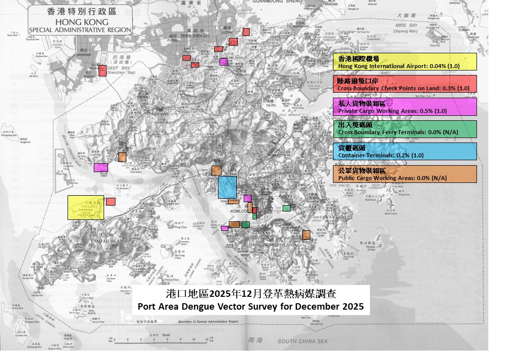 The Port Monthly Gravidtrap Index and the Port Monthly Density Index for Aedes albopictus for December 2025 are 0.1% and 1.0 respectively.