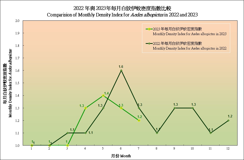 The Monthly Density Index for Aedes albopictus for July 2023 is 1.2.