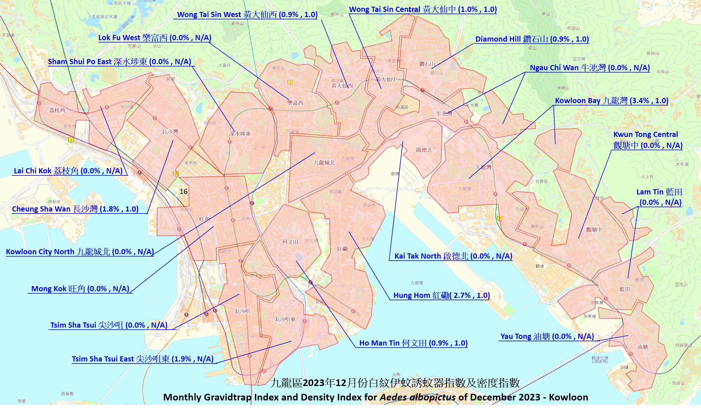 In addition to the areas in the community, surveys of Aedes albopictus are also carried out to cover all major port areas. The following two different groups of indices will be enumerated: