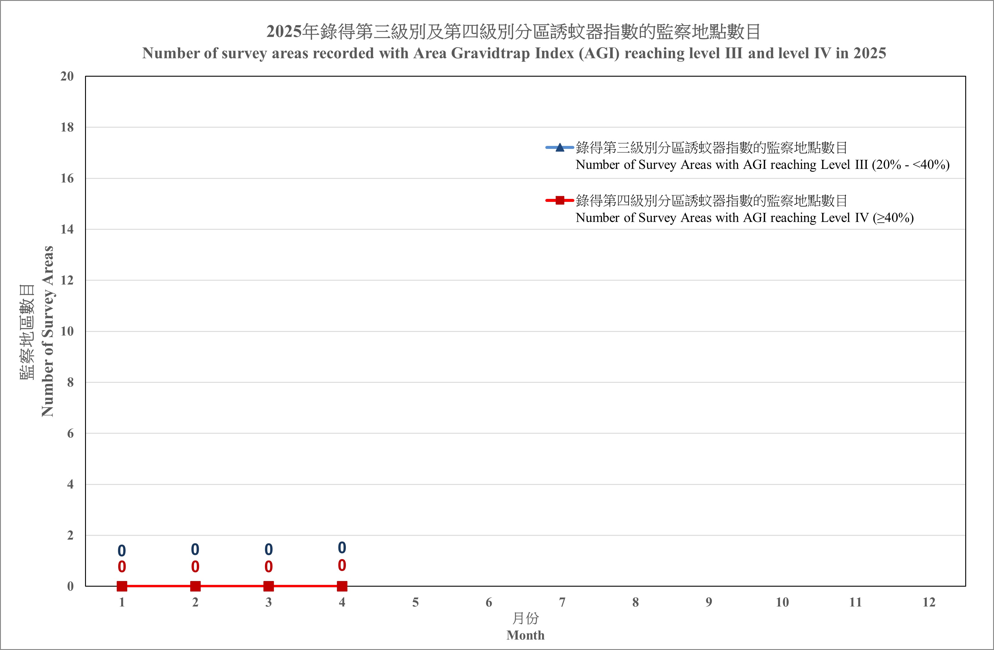 Number of survey areas recorded with Area Gravidtrap Index reaching level III and Level IV in 2025 is provided below: