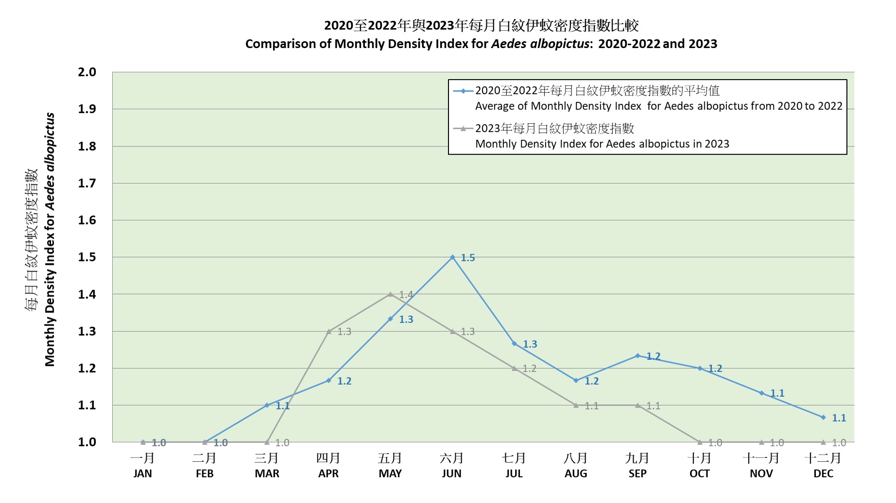 Please click here for a graph of comparison of Monthly Density Index for Aedes albopictus: 2020 to 2023 and 2024.