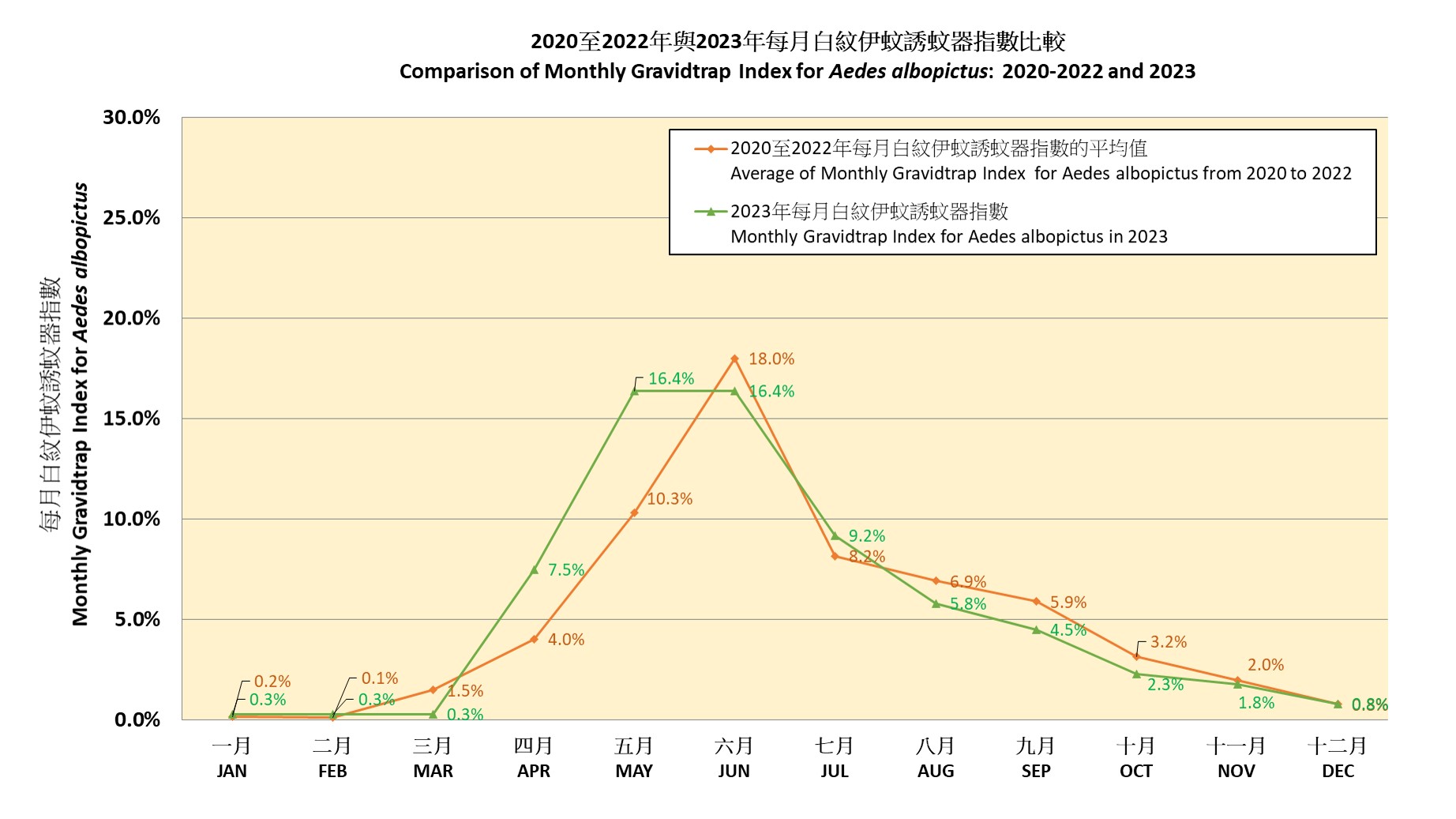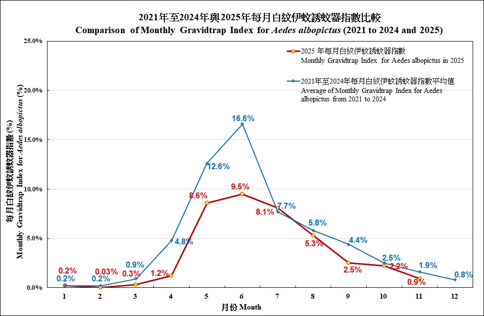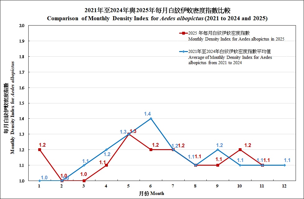 The Port Monthly Gravidtrap Index and the Port Monthly Density Index for Aedes albopictus for November 2025 are 0.3 % and 1.0 respectively.