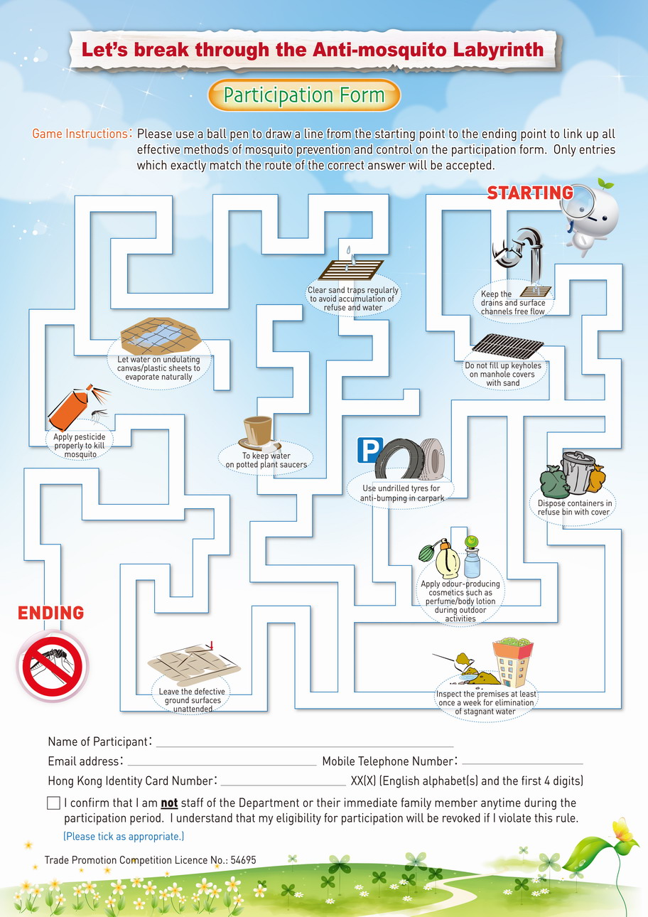 The game 'Let's break through the Anti-mosquito Labyrinth' was successfully completed on 17 November 2021. The list of winners was announced in the Sing Tao Daily and The Standard on 26 November 2021. You can click here to download the list of winners. Moreover, you can click here to browse the answers of the game.