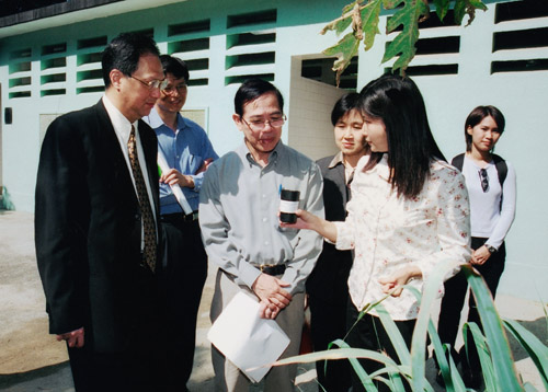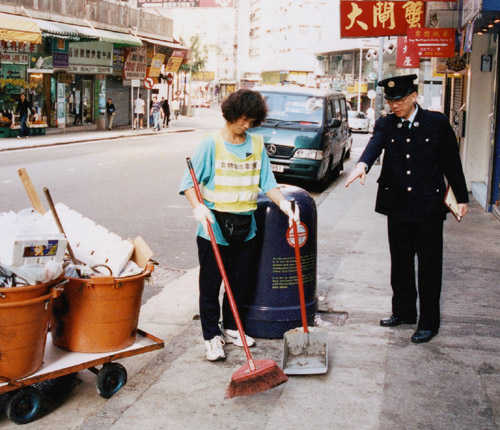 The Chief Executive, Mr Tung Chee Hwa, visits Tsuen Wan to see the work of cleansing workers in the newly created jobs, including washing backlanes, removal of gum dirt on pavements and illegal bills.