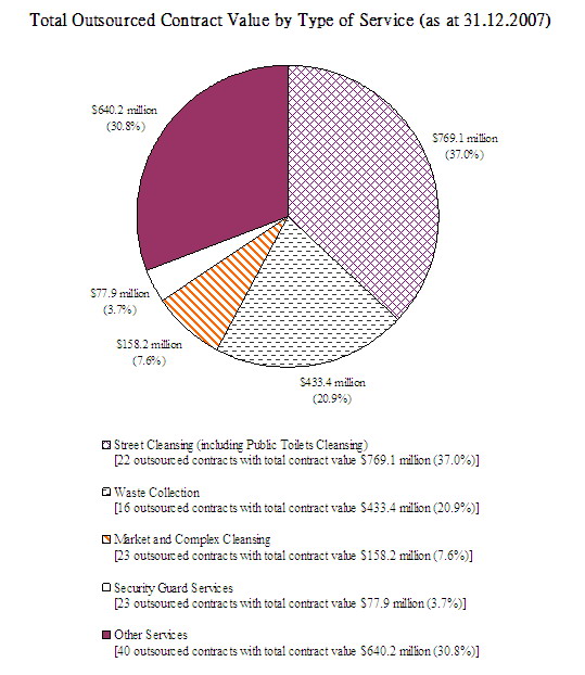 By the end of 2007, 124 contracts valued at $2,078.8 million were in force for the provision of services by private contractors. The outsourcing policy is aimed at greater cost-effectiveness and efficiency in the delivery of services.