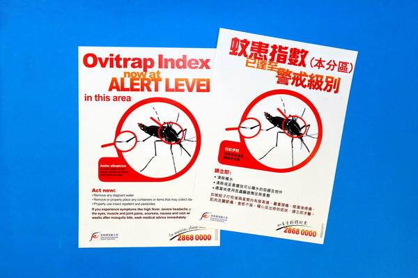 The Food and Environmental Hygiene Department introduces the Ovitrap Rapid Alert System. When the Area Ovitrap Index reaches 20%, subscribers to the system in the area will post up specially designed alert notices.