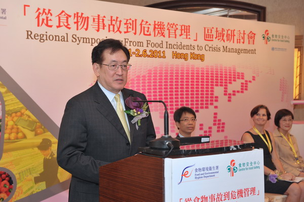 The Secretary for Food and Health, Dr York Chow, addressing the Regional Symposium: "From Food Incidents to Crisis Management".