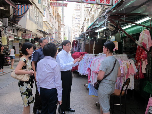 Secretary for Food and Health Dr Ko Wing-man (second right) visits a fixed-pitch hawker area in North Point to better understand the hawking business and hawker stall management. He announces on that day that a five-year assistance scheme for hawkers operating in fixed-pitch hawker areas will be launched.