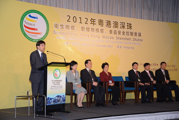 The Secretary for Food and Health, Dr Ko Wing-man, addresses participants at the 2012 Guangdong, Hong Kong, Macao, Shenzhen and Zhuhai meeting on health, animal and plant quarantine and food safety control.