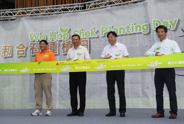 The Secretary for Food and Health, Dr Ko Wing-man (second right); and the Director of Food and Environmental Hygiene, Mr Clement Leung (right), officiate at the Wo Hop Shek Tree Planting Day.