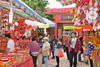 Stalls at Che Kung Temple Lunar New Year Fair in Sha Tin sell pinwheels and other Lunar New Year decoration items.