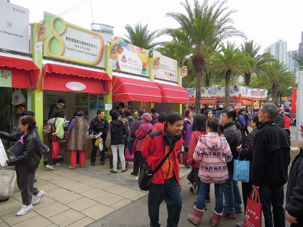 Visitors are attracted by the exhibition booth set up by the Centre for Food Safety at the 49th Hong Kong Brands and Products Expo to promote various food safety issues. |