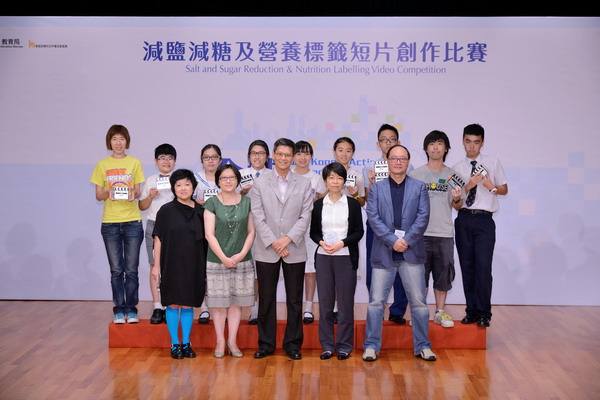 Guests in a photo with winners of the Salt and Sugar Reduction & Nutrition Labelling Video Competition at the award presentation ceremony. |