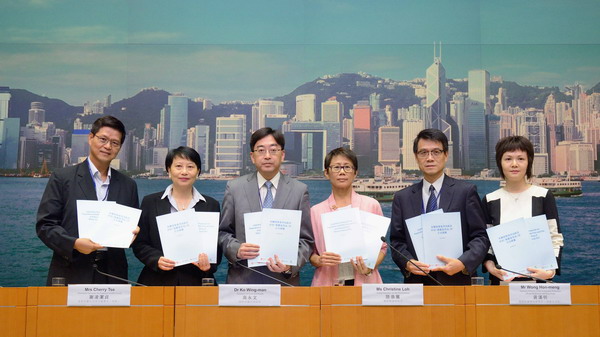The Secretary for Food and Health, Dr Ko Wing-man (third left), introduces the public consultation document on the Legislative Proposals on Regulation of Edible Fats and Oils and Recycling of "Waste Cooking Oils" at a press conference. |