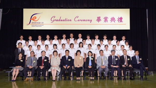 The Director of Food and Environmental Hygiene, Miss Vivian Lau (centre, first row) in a group photo with newly recruited officers who have attended the Induction Training Programmes in 2015. |