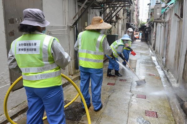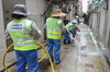 Cleansing workers enhance washing of rear lanes during the campaign period. |