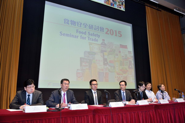 The Centre for Food Safety holds the Food Safety Seminar for Trade 2015. Officials and food trade representatives exchange views on current food safety issues in Hong Kong. |