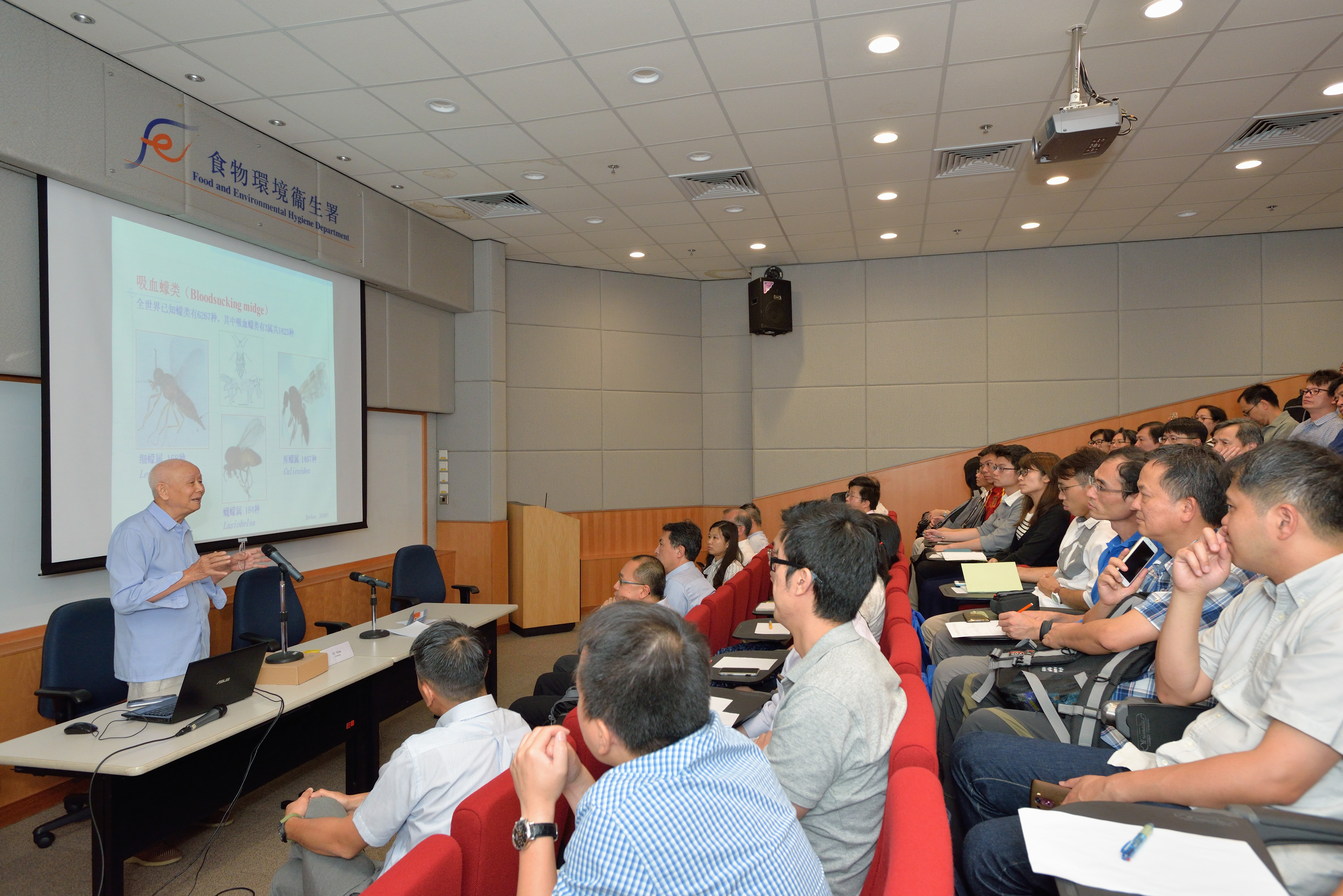 Mainland medical entomologist, Professor Yu Yixin, exchanges views and experiences with departmental staff and local academics on the prevention and control of biting midges.