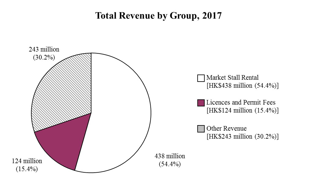 During the year, the Department received a revenue of $805 million. Most of the revenue came from the rental of stalls in public markets managed by the Department ($438 million) and from licence and permit fees ($124 million). Other sources included revenue from cemeteries and crematoria services ($66 million), court fines and statutory penalties ($77 million), slaughterhouse and other concessions ($43 million), meat examination ($21 million) and miscellaneous services ($36 million).