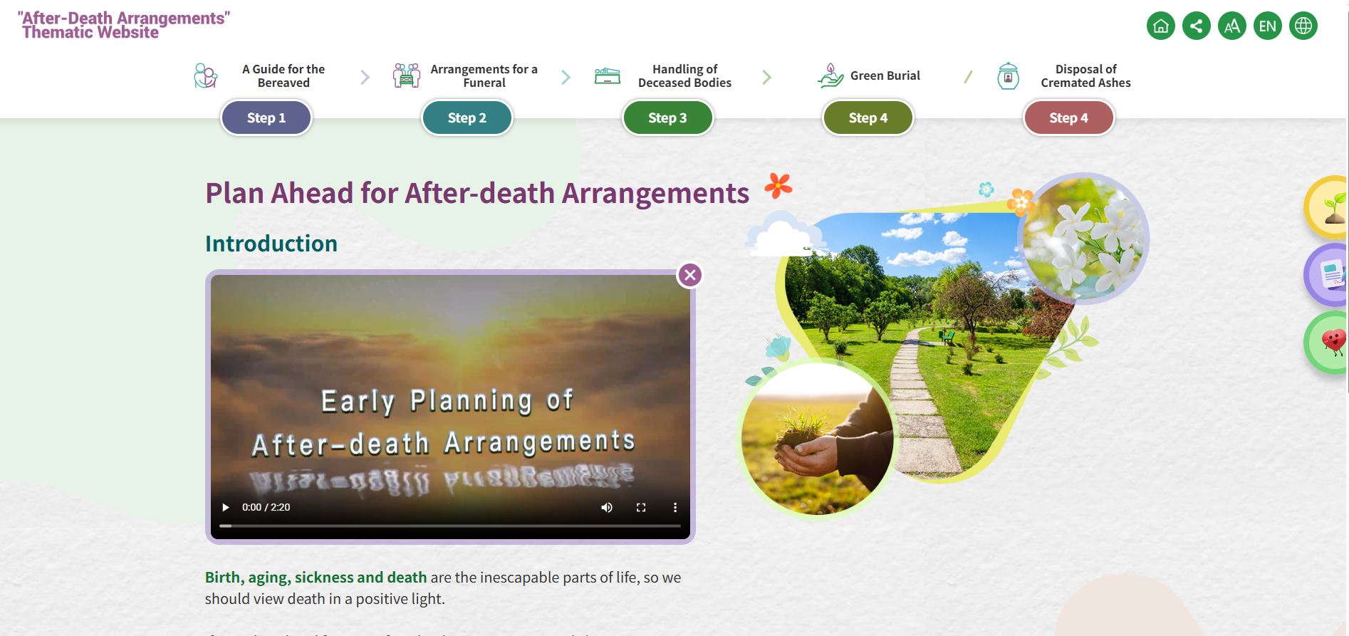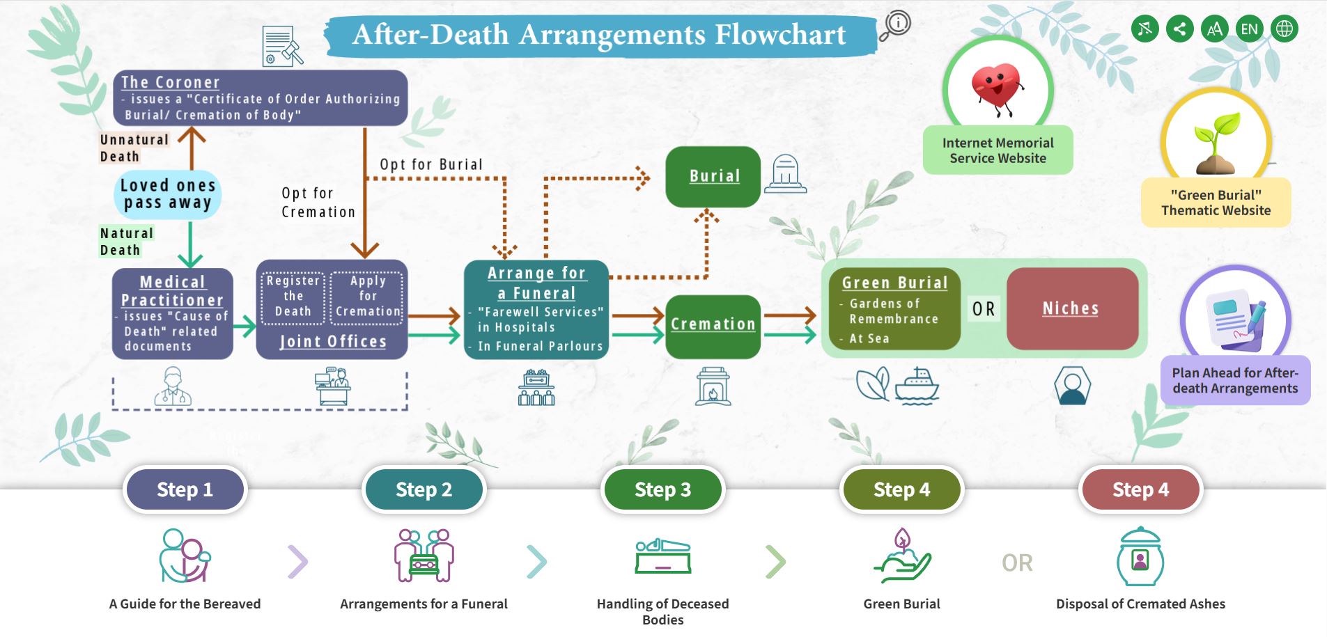A new thematic website - "After-death arrangements" was launched on November 15, presenting a road map for after-death arrangements from death to disposal of the deceased, either by burial or ash disposal in niches or scattering in Garden of Remembrance or at sea in a precise and concise manner. The road map captures the four major after-death steps.