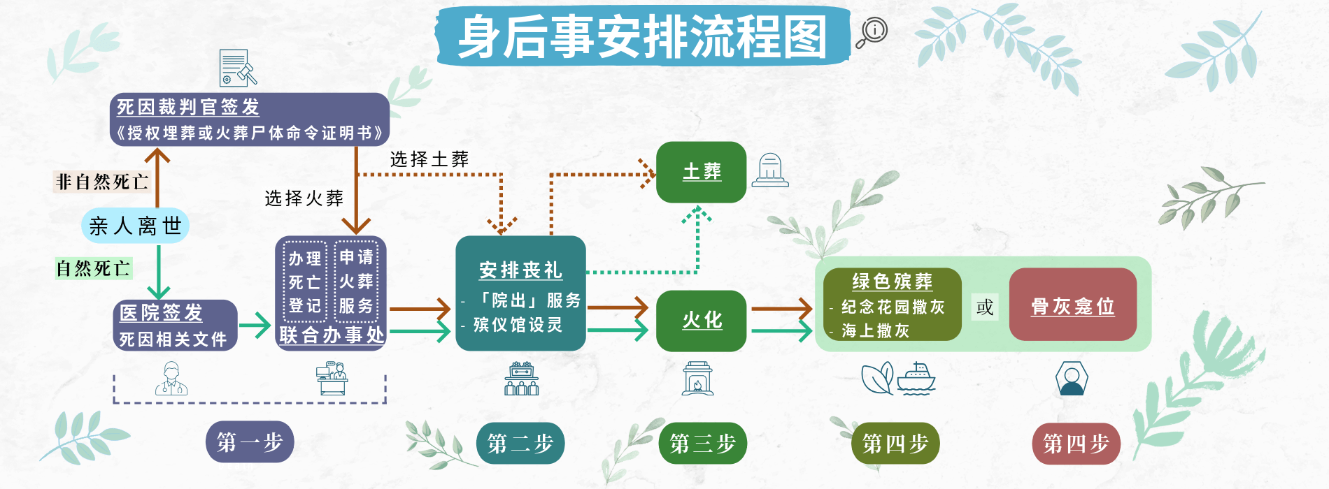 食环署为市民提供火葬及殓葬遗体和骨殖的服务。本署负责营运多个火葬场、公众坟场和公众骨灰安置所,并监察私营坟场的运作。
