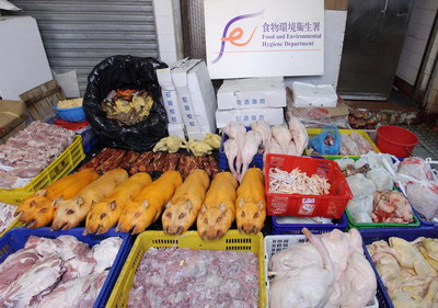 食物环境卫生署(食环署)今早(十一月十日)捣破黄大仙中心街市一间无牌食物制造工场,捡获约700公斤生熟食物,包括烧乳猪、叉烧、熟鸡及烧鸭等。