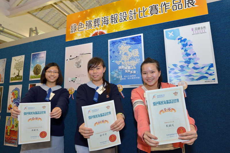 她说:「食环署举办『绿色殡葬海报设计比赛』,旨在进一步加深青少年对绿色殡葬的认识。比赛由去年十月至今年一月举行,反应理想,我们喜见年青人支持推广绿色殡葬。六十多幅参赛作品不但充满创意,亦充份表达绿色殡葬的主题。食环署计划日后在编制绿色殡葬的宣传刊物时,加入得奖的设计以加强推广有关信息。」