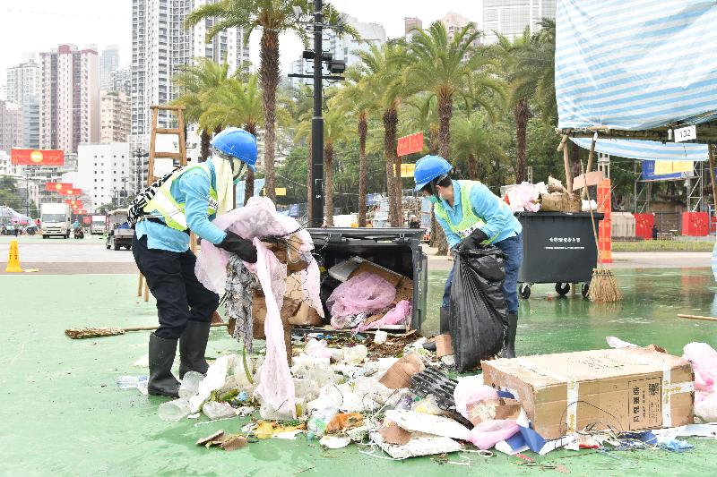 为清理维多利亚公园年宵市场的垃圾,食环署动员201名员工及调动33辆垃圾收集车和水车,其余十四个年宵市场则由外判洁淨服务承办商负责清理。所有年宵市场的清理工作约于下午五时完成,经彻底清洗后,场地已回复清洁原貌。