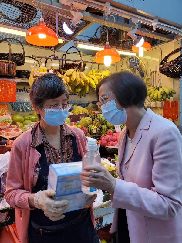 食环署到辖下街市派发外科口罩及消毒搓手液