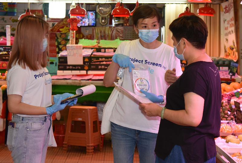 食物环境卫生署(食环署)今日(七月二十八日)开始为街市摊档从业员安排2019冠状病毒病检测服务。检测承办商(Prenetics Limited)今日起陆续到全港街市,派发样本瓶予摊档从业员及驻场人员收集深喉唾液样本,有关人士无须网上登记。