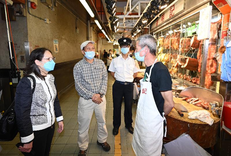 食环署一众管理人员今早前往各区共21个人流较多的公众街巿视察(详情见附件),了解巿民在新安排下进入公众街巿的情况,为使用程式有困难的巿民提供协助,又听取市民及商贩代表对新安排的意见及解答相关疑问。商贩代表包括港九新界贩商社团联合会主席陈锦荣、副主席林福泉和曾庆华、北河街街市台商协会会长黄天雄、湾仔街市贩商会主席刘美珍、大埔墟街市档户代表李立财、石湖墟街市商户联会主席刘丽嫦及副主席杜德胜和屯门新墟街市协进会副主席欧阳建明。