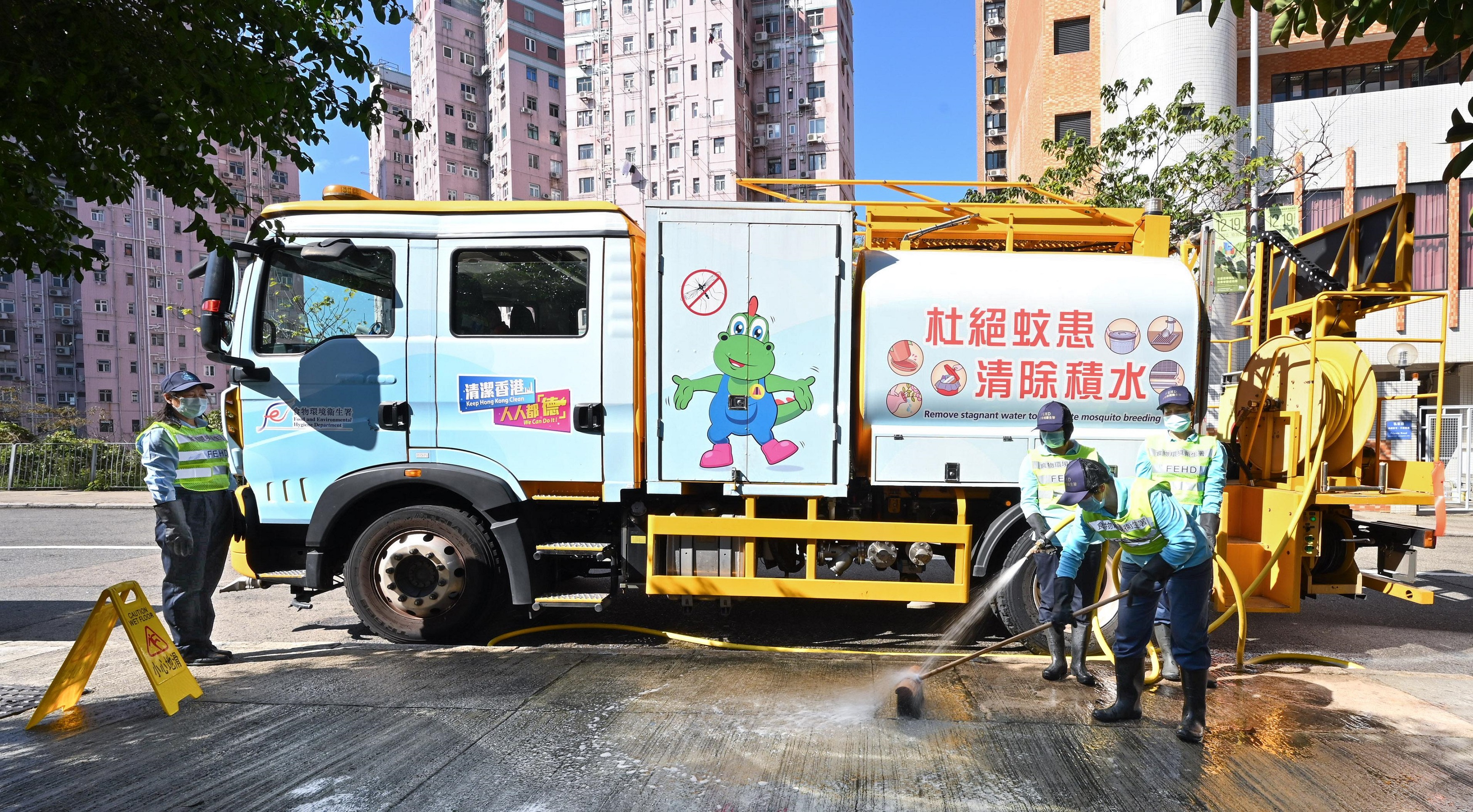 食环署发言人说:「食环署由二○二一年十二月二十日起进行了为期约三星期的强化岁晚清洁大行动,加强全港各区投诉热点的街道洁淨、打击店铺阻街的违法行为,以及加强防治鼠患的工作。为深化清洁香港和巩固防疫工作,岁晚清洁大行动今日展开,以持续保持环境清洁和卫生。」