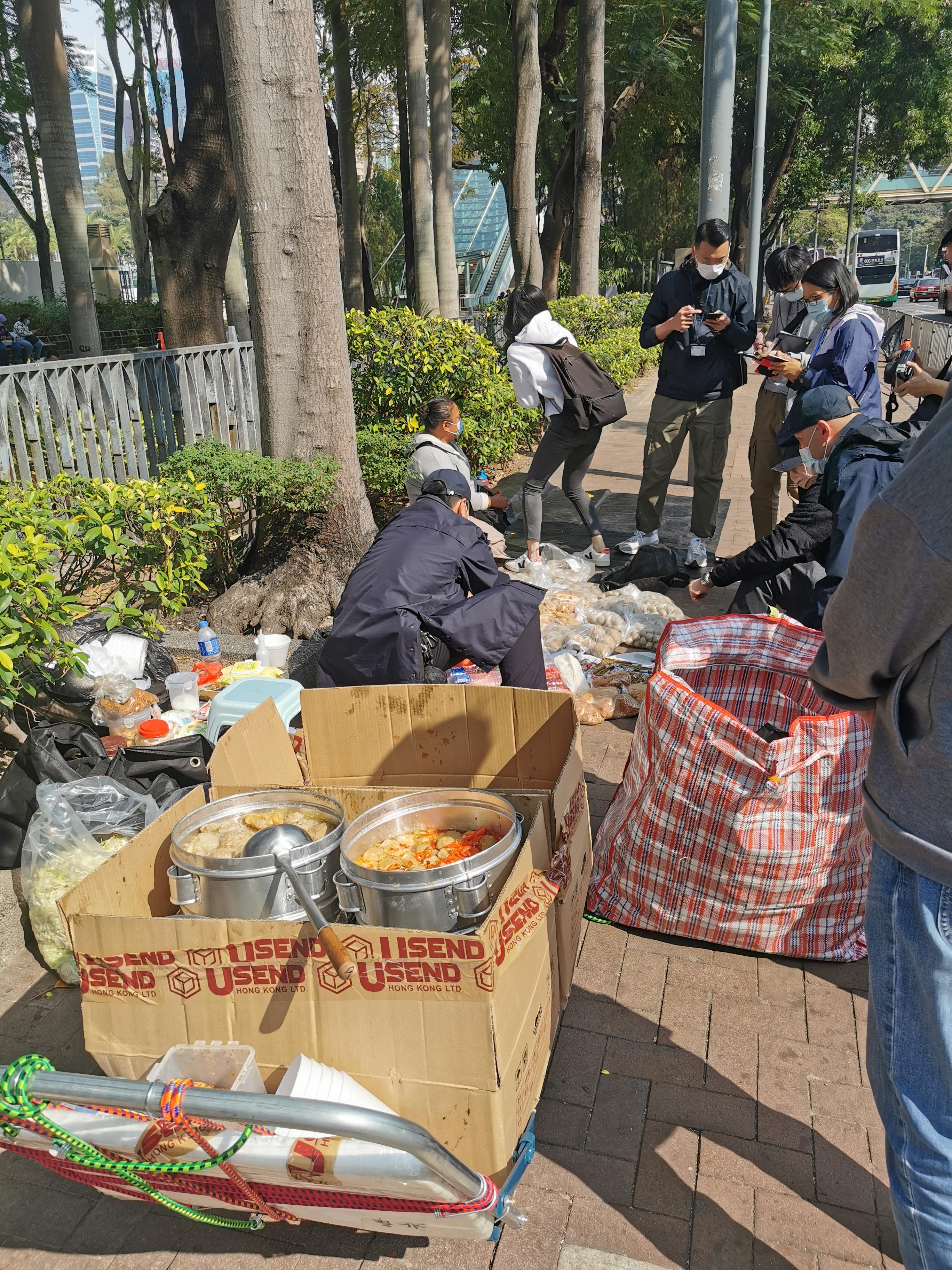 食环署在上周末与香港警务处、劳工处、入境事务处及康乐及文化事务署携手,在外佣周末及假日惯常聚集的中环添马公园及遮打道、湾仔的维多利亚公园、东岸公园(第一期)及糖街,和旺角道行人天桥等附近一带的公众地方采取跨部门联合行动。食环署除安排洁淨服务承办商加强有关地点的公众街道洁淨服务外,亦加派人员巡逻以打击乱抛垃圾和无牌小贩摆卖活动。在昨日(一月九日)行动中,食环署人员在维多利亚公园附近就有人在公众地方无牌贩卖提出一宗检控,并捡取两批小贩弃置物品,包括熟食。