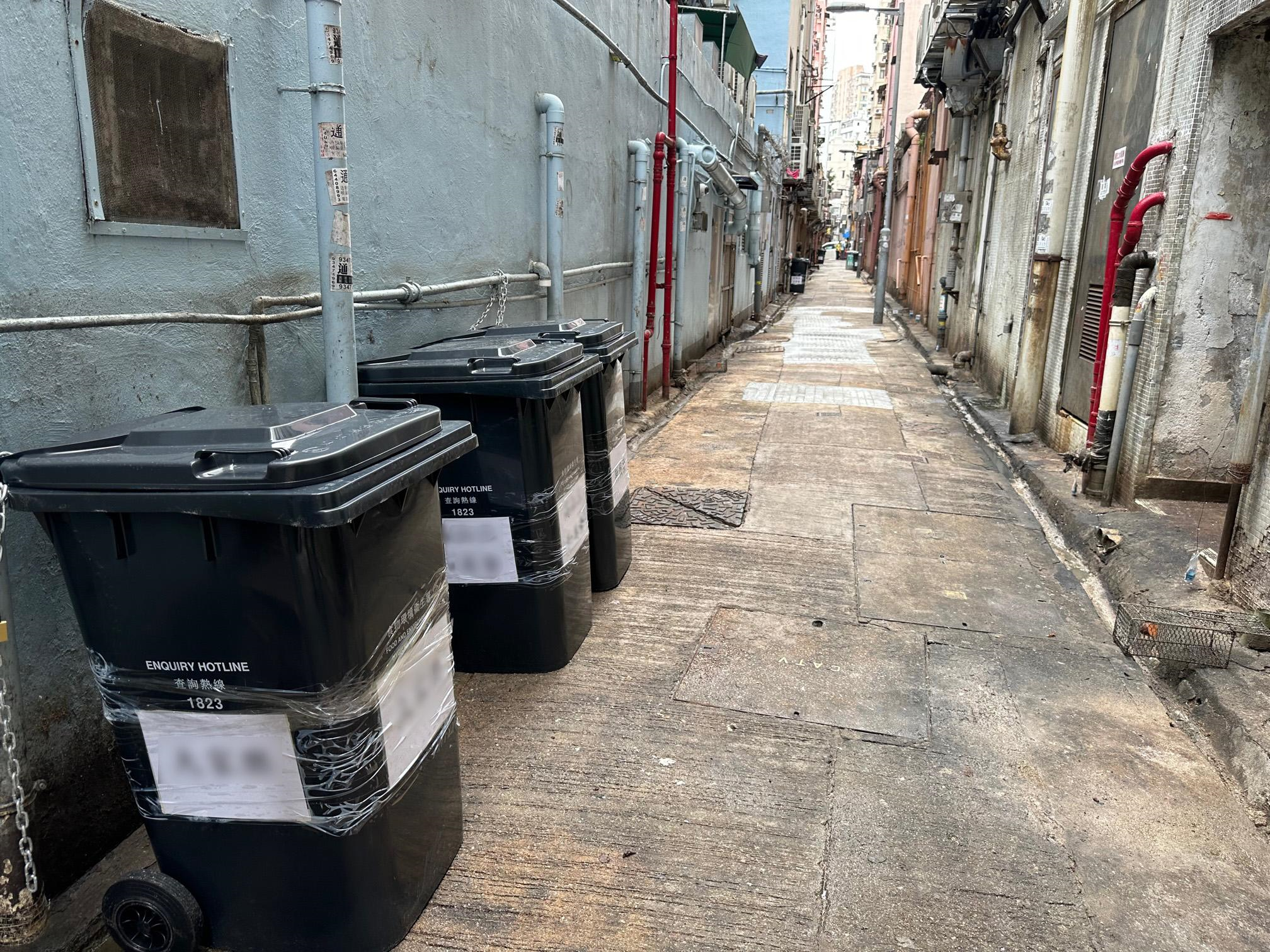 然而,在实际操作上,不少食肆都需要将废物短暂存放于户外以便清洁人员收集,尤其是在营业时间过后。有见及此,食环署希望以务实的态度协助食物业履行其责任。今日开始,食环署会推行试验计划,在九条与食物业处所相连的后巷提供已标示商号的240公升垃圾桶,规范有关食物业处所处理及储存垃圾的方式,务求改善有关后巷的环境卫生情况及有效防治鼠患。