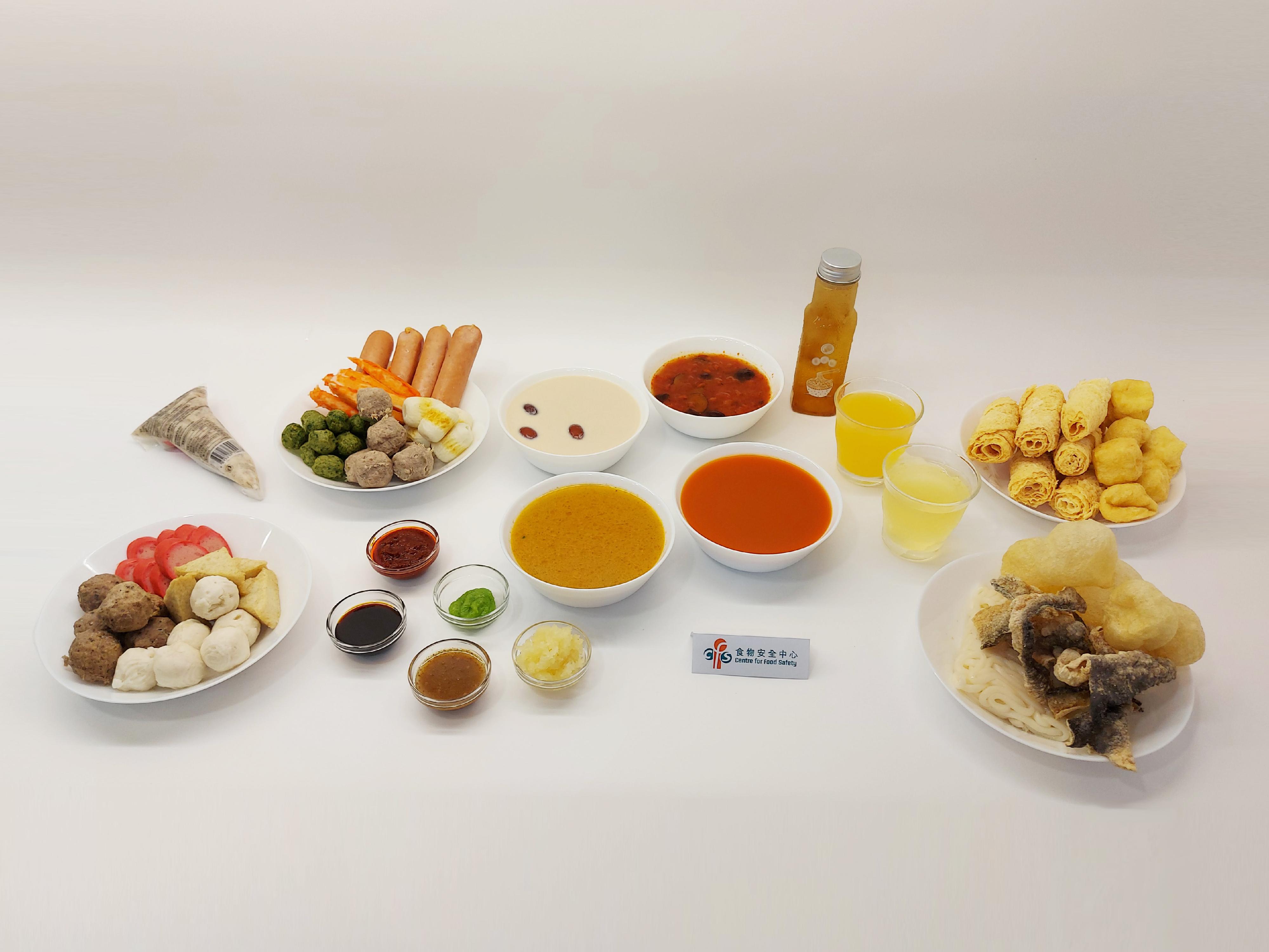 中心从食肆、新鲜粮食店、超级市场、杂货店、街市及零售商(包括网上零售商)抽取不同种类的火锅食物样本,包括肉类及其制品(包括牛丸、猪肉丸等)、水产及其制品(包括鱼蛋、虾丸、墨鱼丸等)、豆制品(包括豆卜、豆腐、枝竹等)、面条、汤底、饮品(包括果汁、酸梅汤等)和酱料,进行化学和微生物测试。