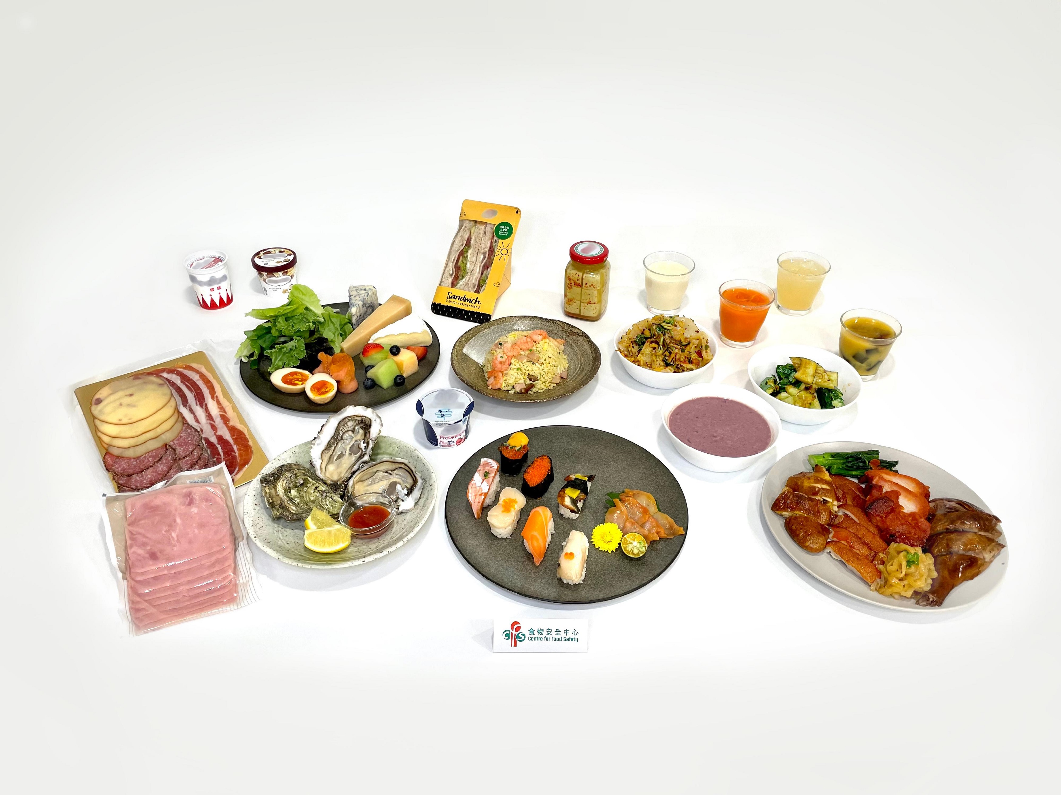 检测样本包括一百七十五个奶类制品及冰冻甜点样本、一百三十一个切开的水果及沙律样本、九十个甜品及饮品样本、四十五个三文治样本、二百六十八个冻食或经烹煮的肉类制品样本、六百零七个水产及其制品样本(如寿司及刺身、鱼类、甲壳类动物、软体动物及其他水生食用动物)及五百三十六个其他即食食品样本。