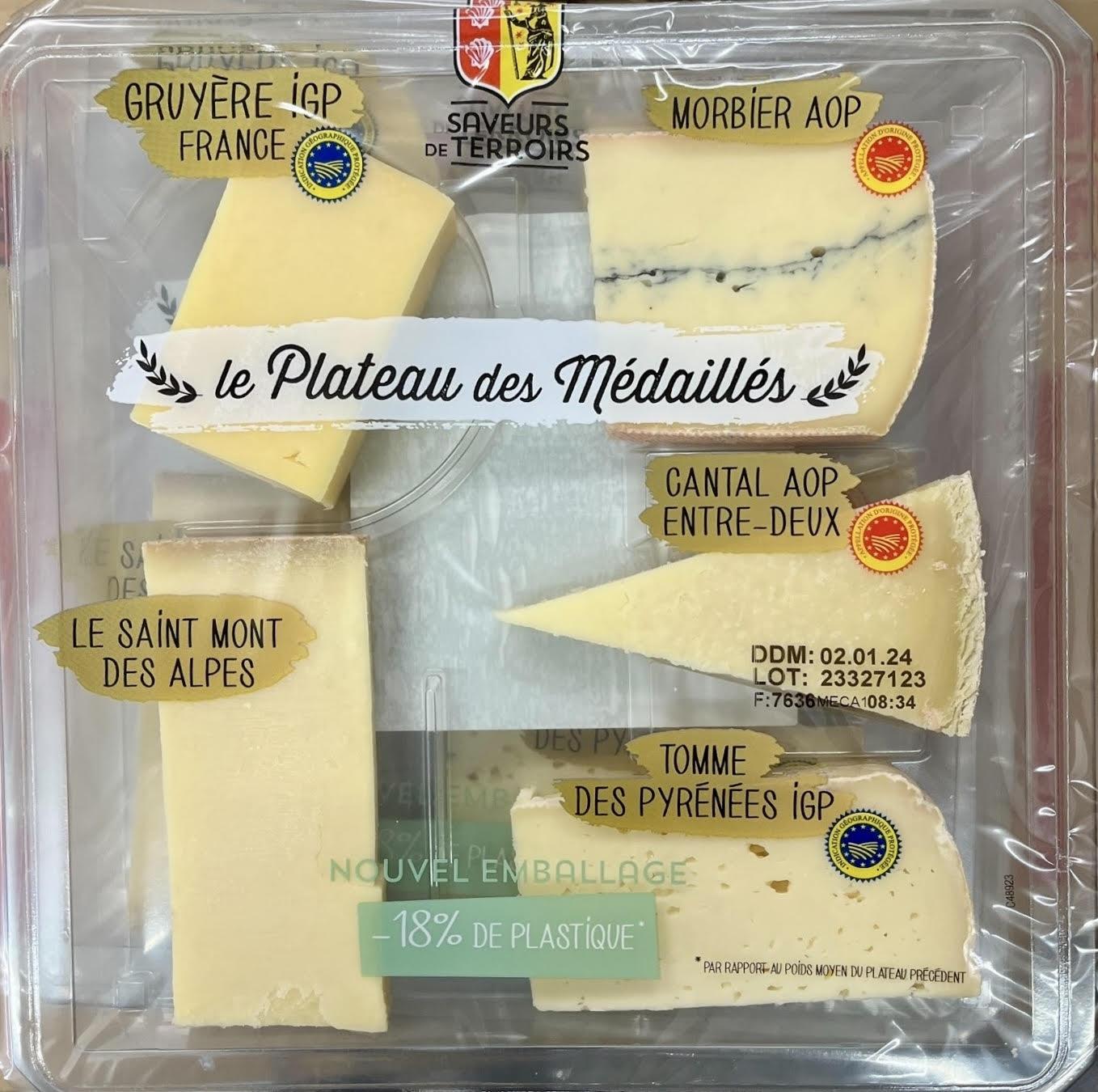 产品名称:Plate of 5 Medals Winner Assorted Cheeses (with 4 Types of Raw Milk Cheese) (Le Plateau des Médaillés)