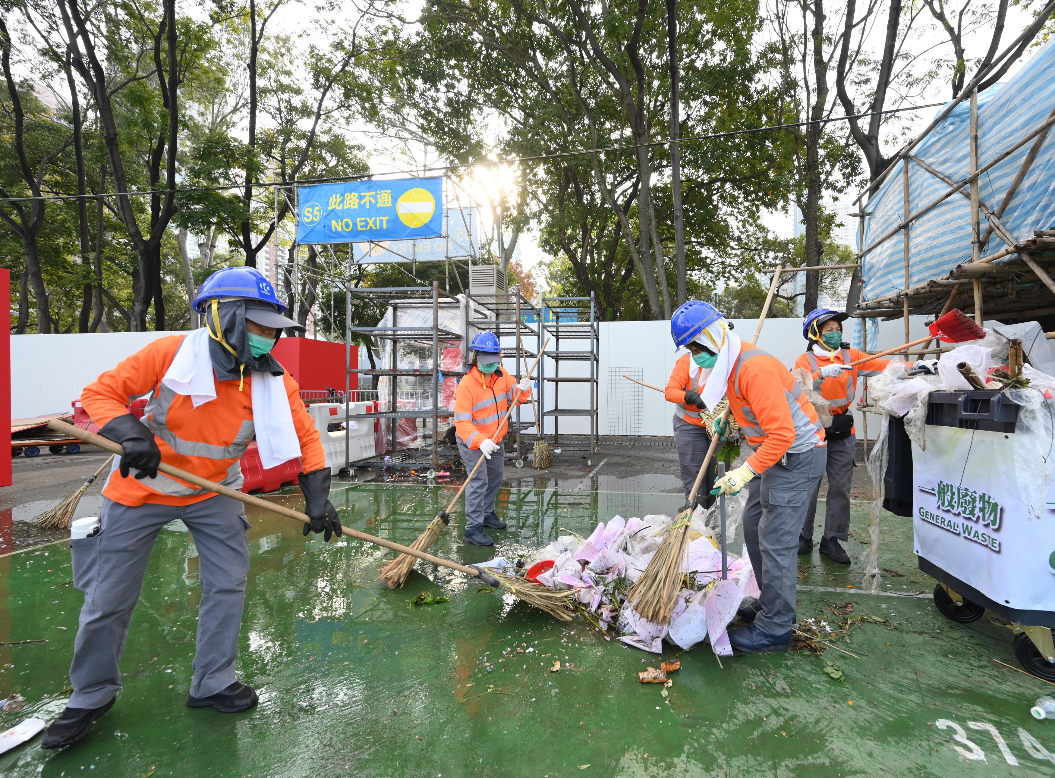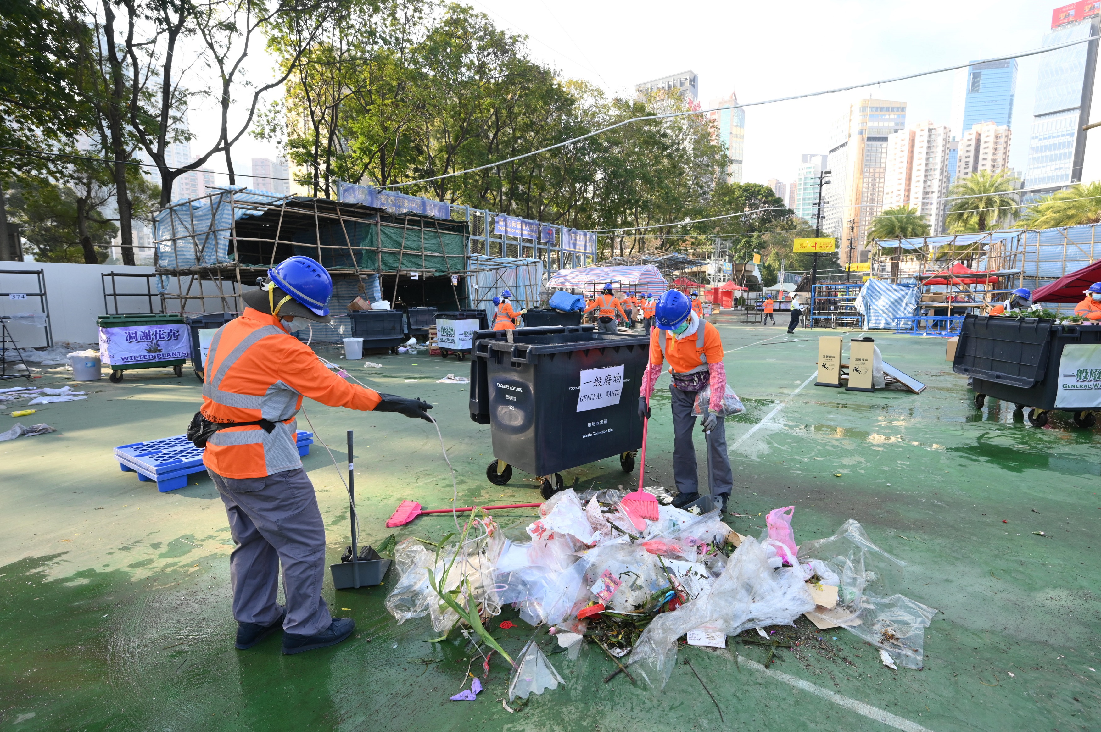 随着年宵市场圆满结束,食环署动员约250名员工及调动48架次垃圾收集车和洗街车为维多利亚公园年宵市场进行清理工作,其余十四个年宵市场清理工作则由外判洁淨服务承办商负责。所有年宵市场的清理工作约于下午六时完成,经彻底清洗后,场地已回复清洁原貌。