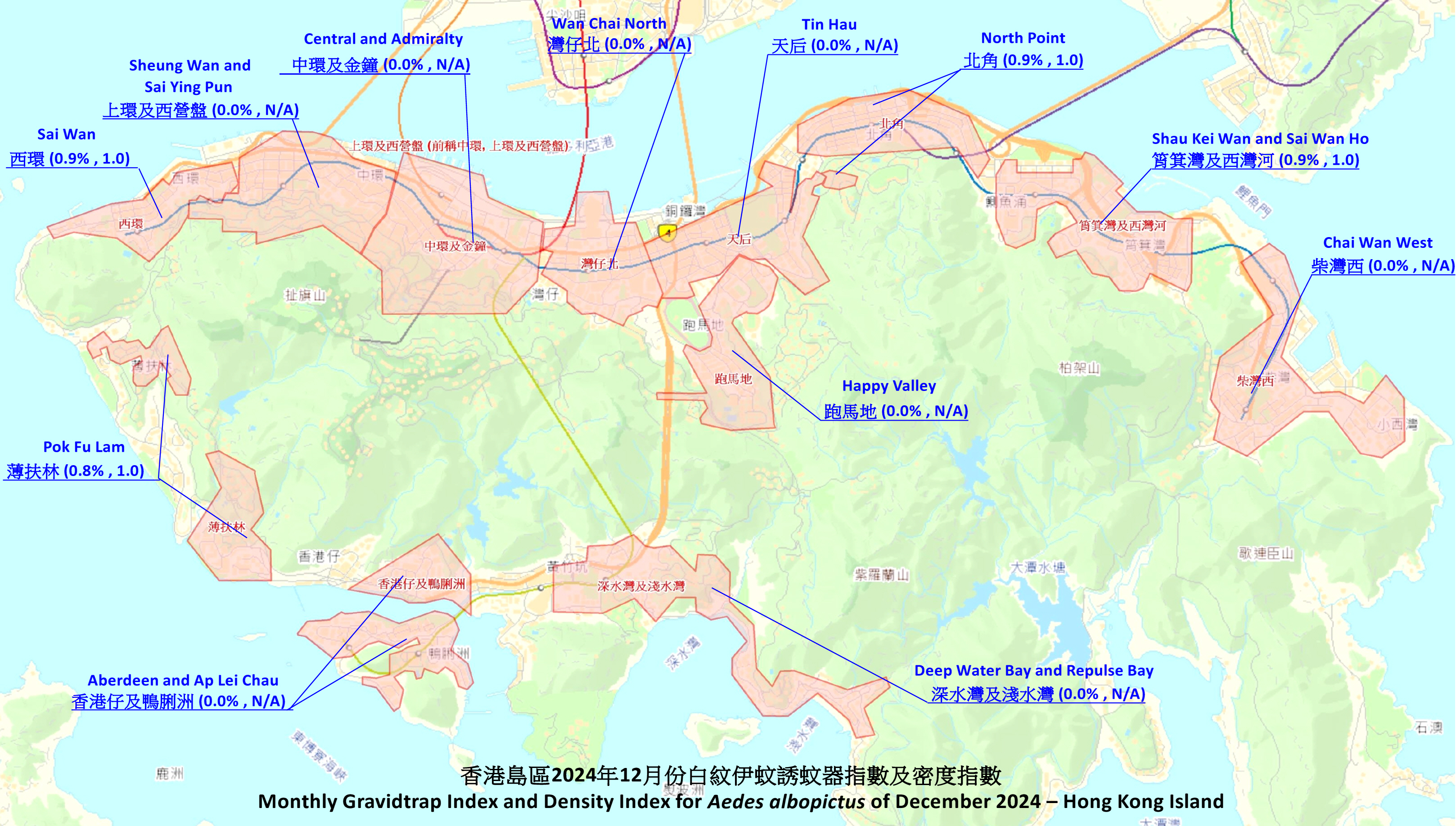 | 中西区 | 中环及金钟 | 分区诱蚊器指数 | 4.0 | 3.0 | 2.0 | 3.8 | 14.4 | 9.4 | 2.9 | 0.0 | 4.0 | 1.9 | 0.0 | 0.0 |