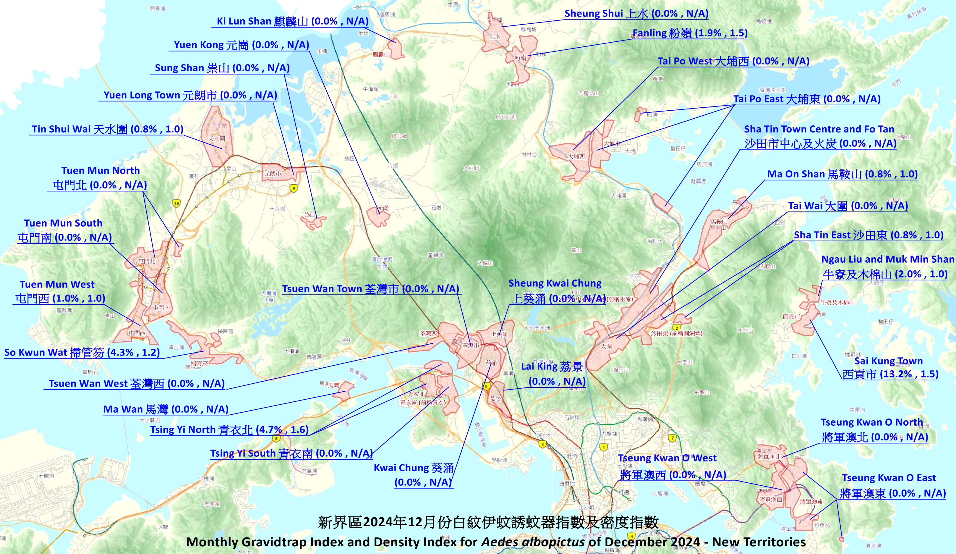 | 沙田市中心及火炭 | 分区诱蚊器指数 | 0.0 | 0.0 | 0.0 | 1.9 | 19.3 | 14.4 | 5.5 | 1.9 | 0.9 | 0.0 | 0.0 | 0.0 | |