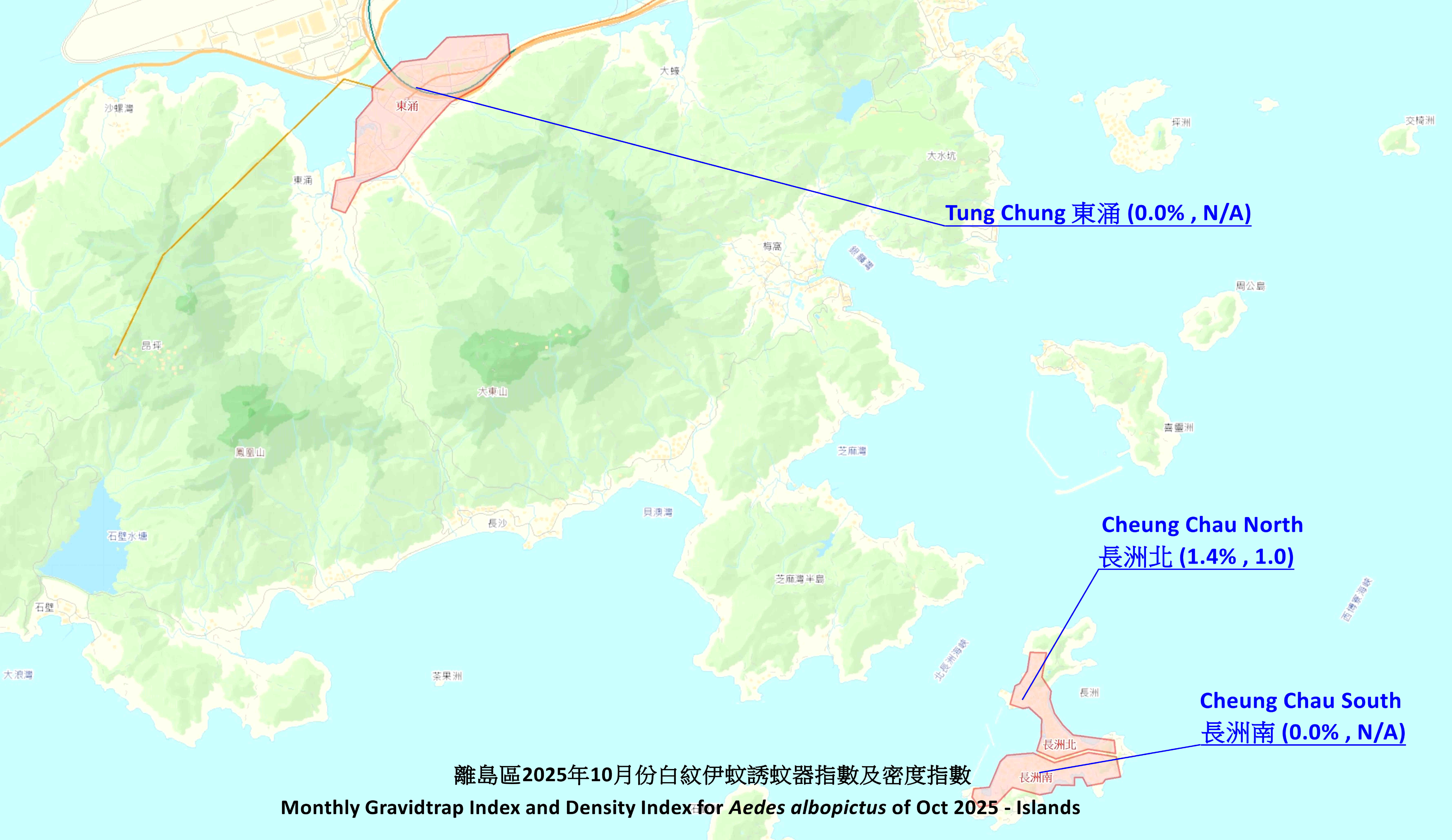 二零二五年十月份的港口每月白纹伊蚊诱蚊器指数为0.6%,港口每月白纹伊蚊密度指数为1.0。
