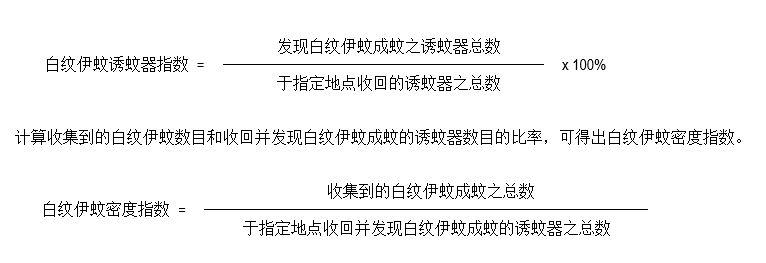 为研究白纹伊蚊的分布情况,本署在全港不同地点放置诱蚊器,以监察这些蚊子的滋生情况。计算发现蚊子滋生的诱蚊器所占的百分比,可得出白纹伊蚊诱蚊器指数,白纹伊蚊诱蚊器指数的数值显示病媒滋生的广泛程度。