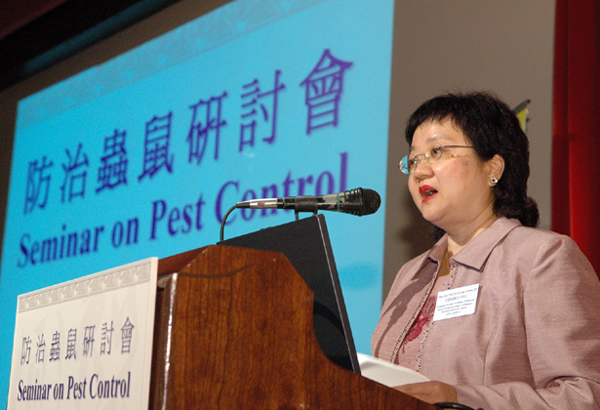 前卫生福利及食物局常任秘书长(食物及环境卫生)尤曾家丽在研讨会上致辞。