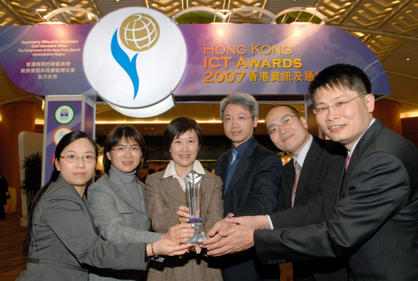 食物安全中心的代表分享营养资料查询系统获得2007香港资讯及通讯科技奖最佳公共服务应用(最受欢迎)奖银奖的喜悦。