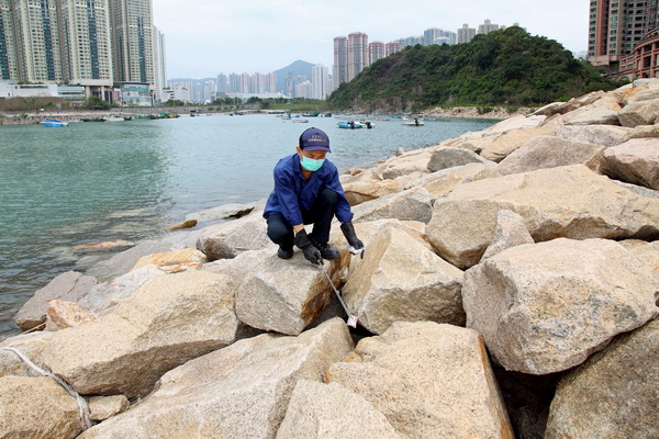 食环署人员放置鼠饵,以防治鼠患。